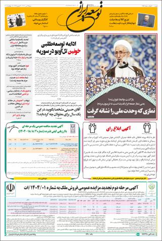 توسعه ایرانی [روزنامه]، چاپ صبح. شماره 1954