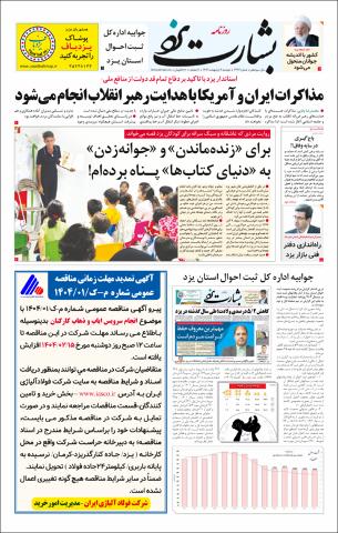 بشارت یزد [روزنامه]، چاپ صبح. شماره 2362