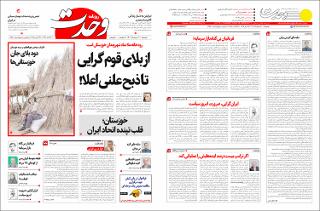 وحدت [روزنامه]، چاپ صبح. شماره 2450