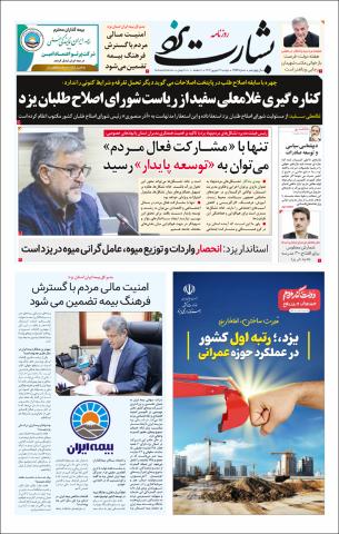 بشارت یزد [روزنامه]، چاپ صبح. شماره 2454