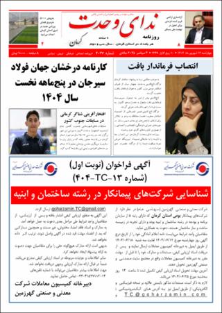 ندای وحدت کرمان [روزنامه]، چاپ صبح. شماره 4037