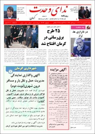 ندای وحدت کرمان [روزنامه]، چاپ صبح. شماره 4031