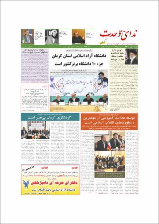 ندای وحدت کرمان [روزنامه]، چاپ صبح. شماره 1881