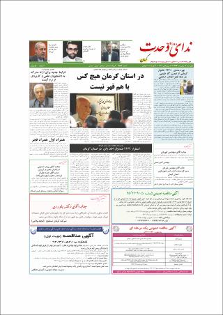 ندای وحدت کرمان [روزنامه]، چاپ صبح. شماره 1886