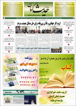 حدیث کرمان [روزنامه]، چاپ عصر. شماره 4782