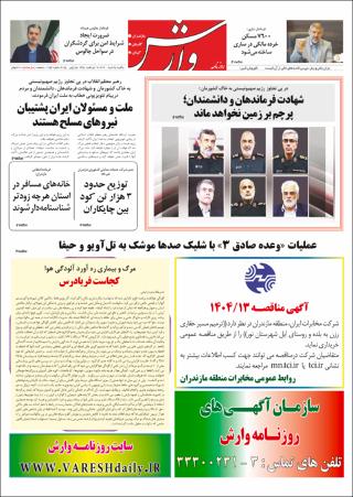 وارش [روزنامه]، چاپ صبح. شماره 2054